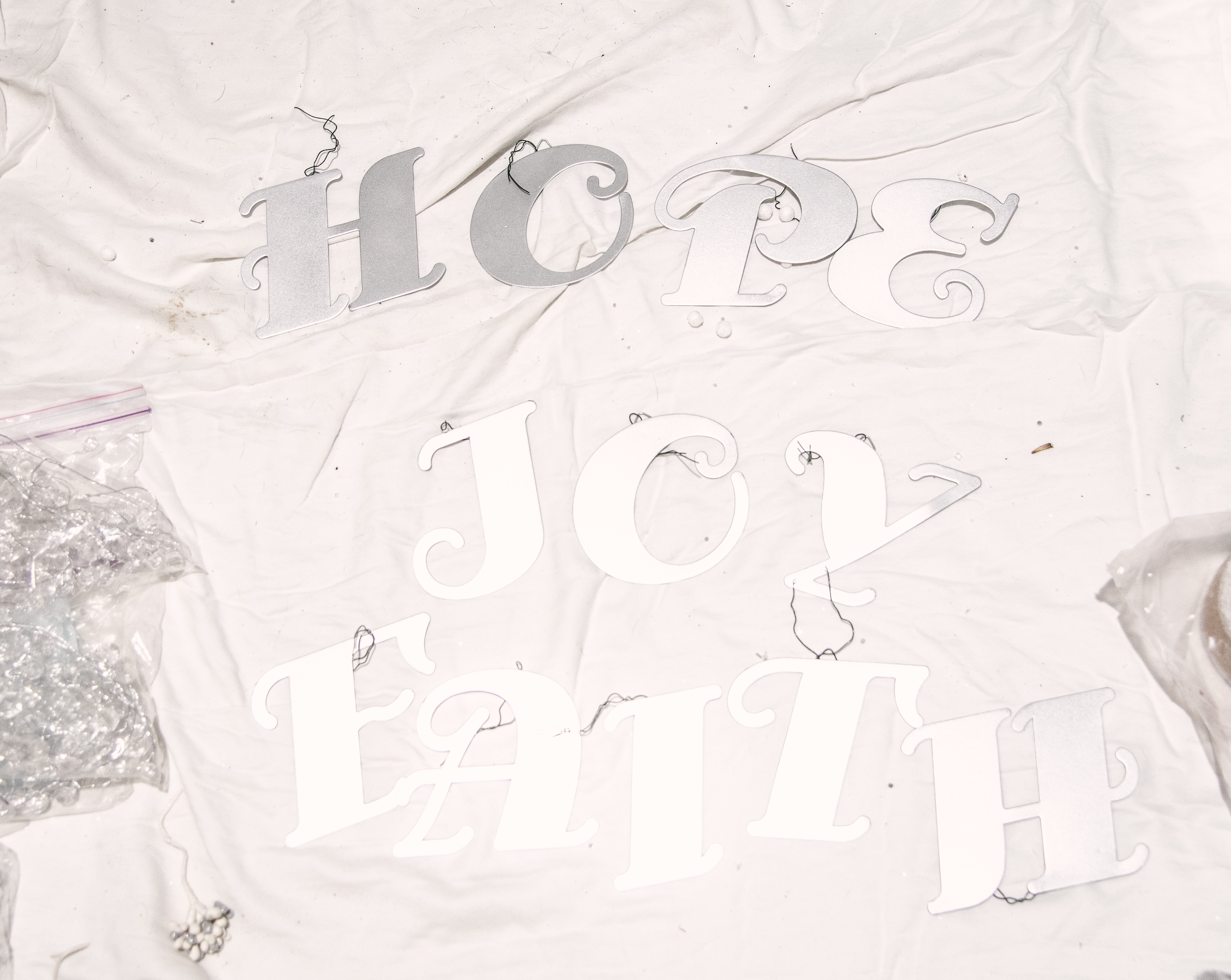 3. LAY OUT ALL YOUR GOODIES! See what you’ve got. This will prevent you from double purchasing and having to make extra trips. Also buy WIRE and WIRECUTTERS!! Wires ARE THE KEY TO KEEPING ALL ORNAMENTS TIGHT TO THE BRANCH!